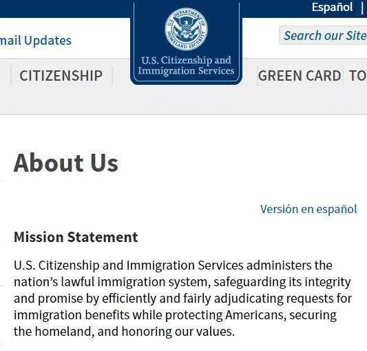 2018年2月底,美国移民局(USCIS)突然发表的新的使命宣言中,不再宣称“美国是移民国家”,而是表示“美国移民局负责管理美国合法的移民制度,通过有效且公平地裁决移民申请案,维护移民体制的完整性及承诺,同时保护美国人、确保家园安全,以及尊重我们的价值观。”而USCIS以前的使命宣言是:“USCIS保证美国是移民国家的承诺、为申请人提供准确有效的讯息、批准移民和公民申请、增进移民对入籍的了解,以及保证美国移民体系的完整。”