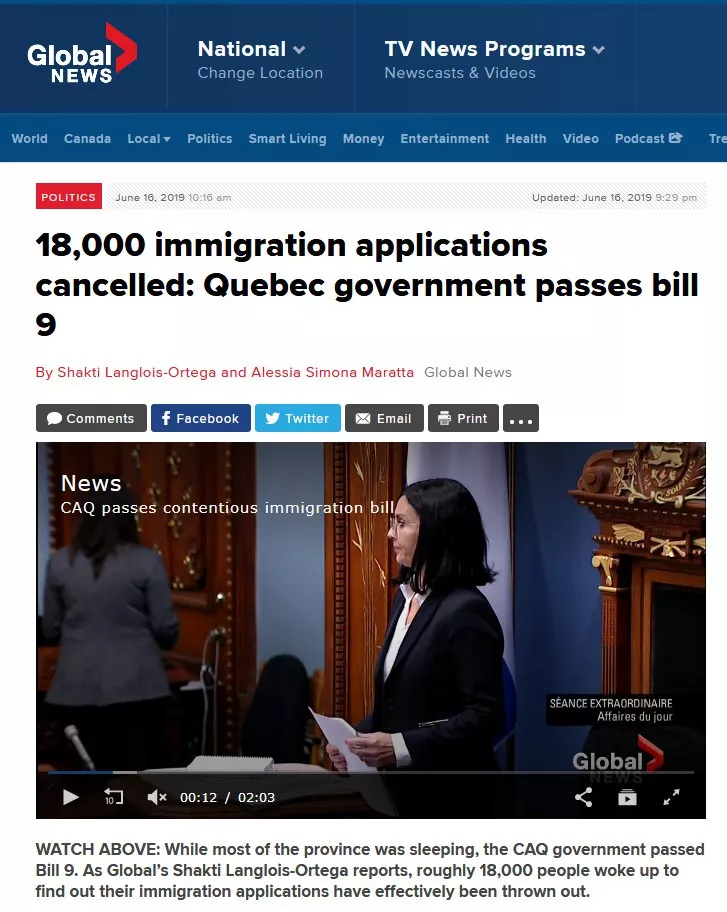 加拿大时间6月16日凌晨4点,魁北克议会在长达19个小时的马拉松式讨论后,终以62比42的投票结果通过了备受争议的第9号法案( BILL-9),将签证系统从以家庭移民为基础,转向专业与职业技能符合其就业市场需求等因素的技术移民。这意味着,魁北克省以立法形式明确了2018年8月2日以前提交的所有没有处理完成的1.8万份魁省技术移民申请全部作废,影响人数约为5万人。魁省政府将退还申请费用,这1.8万组人需重新进行移民申请程序。
